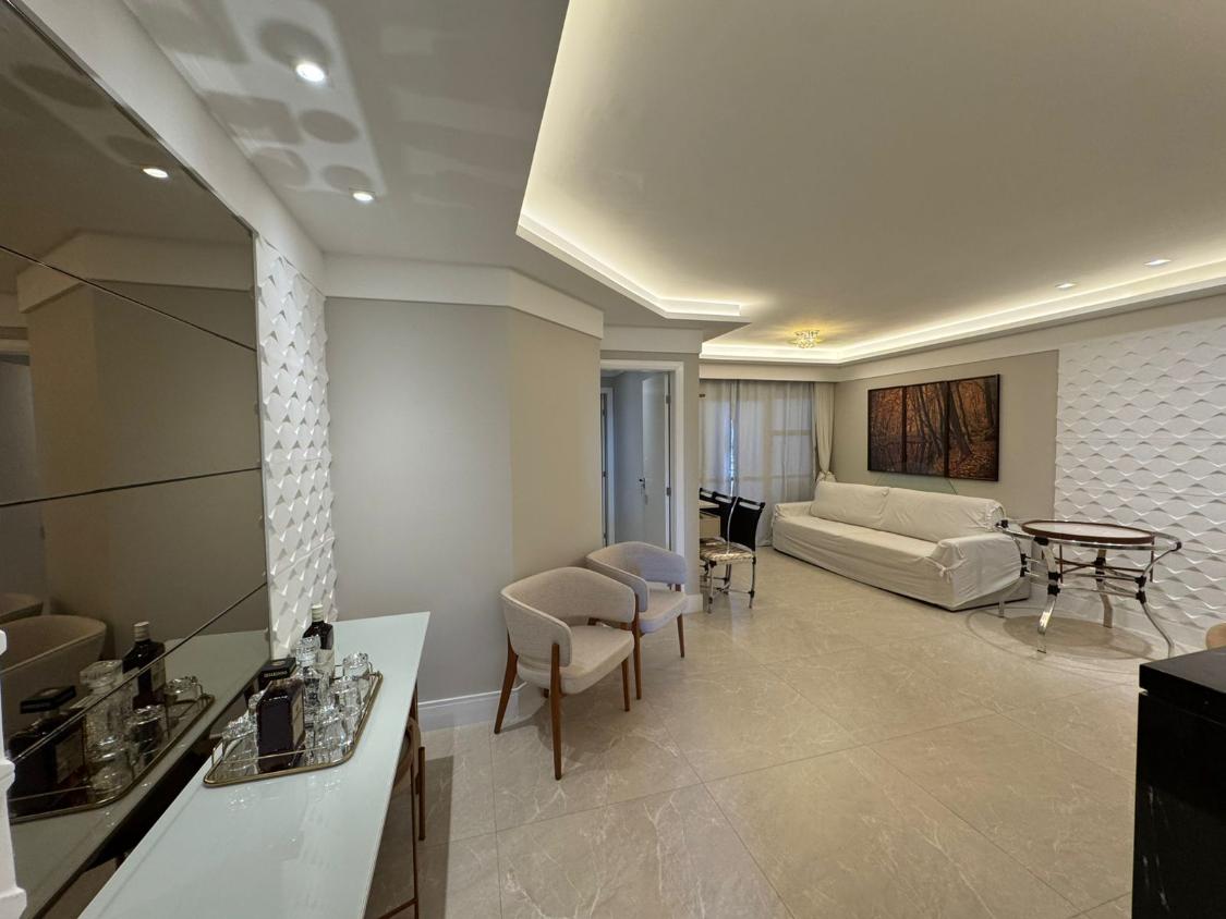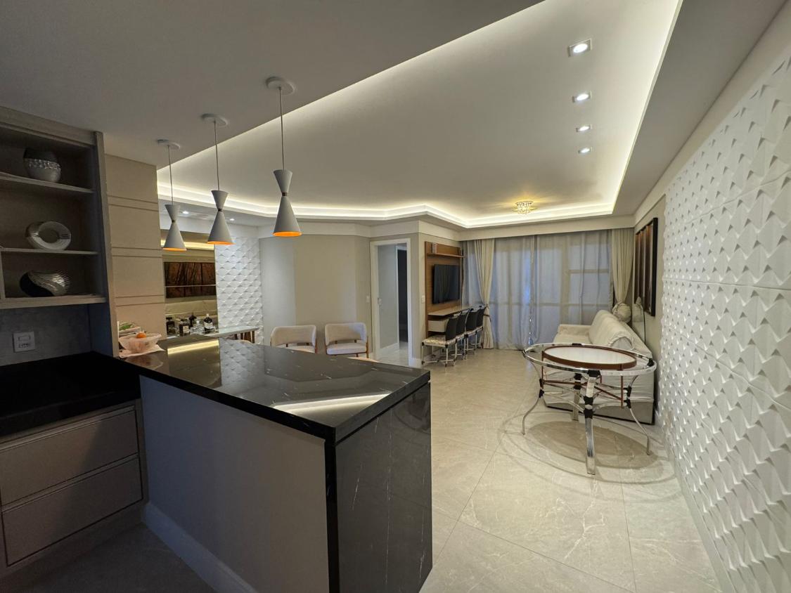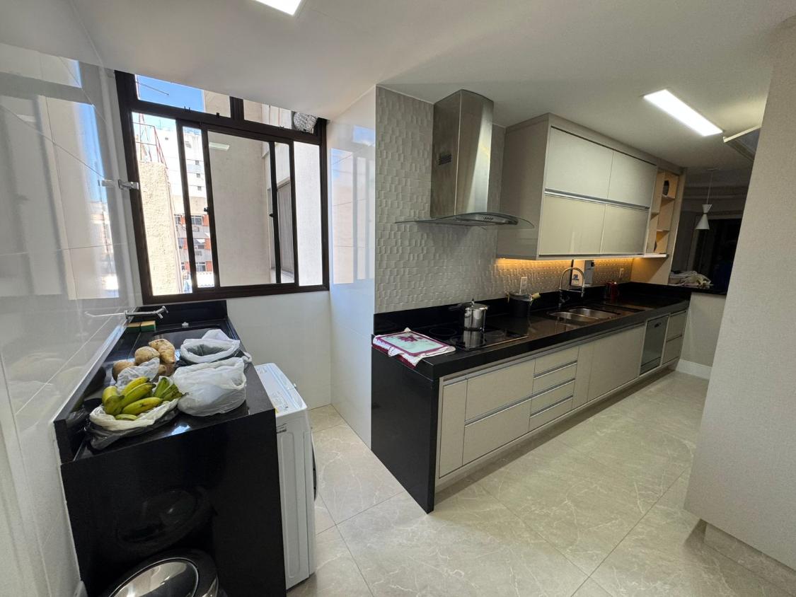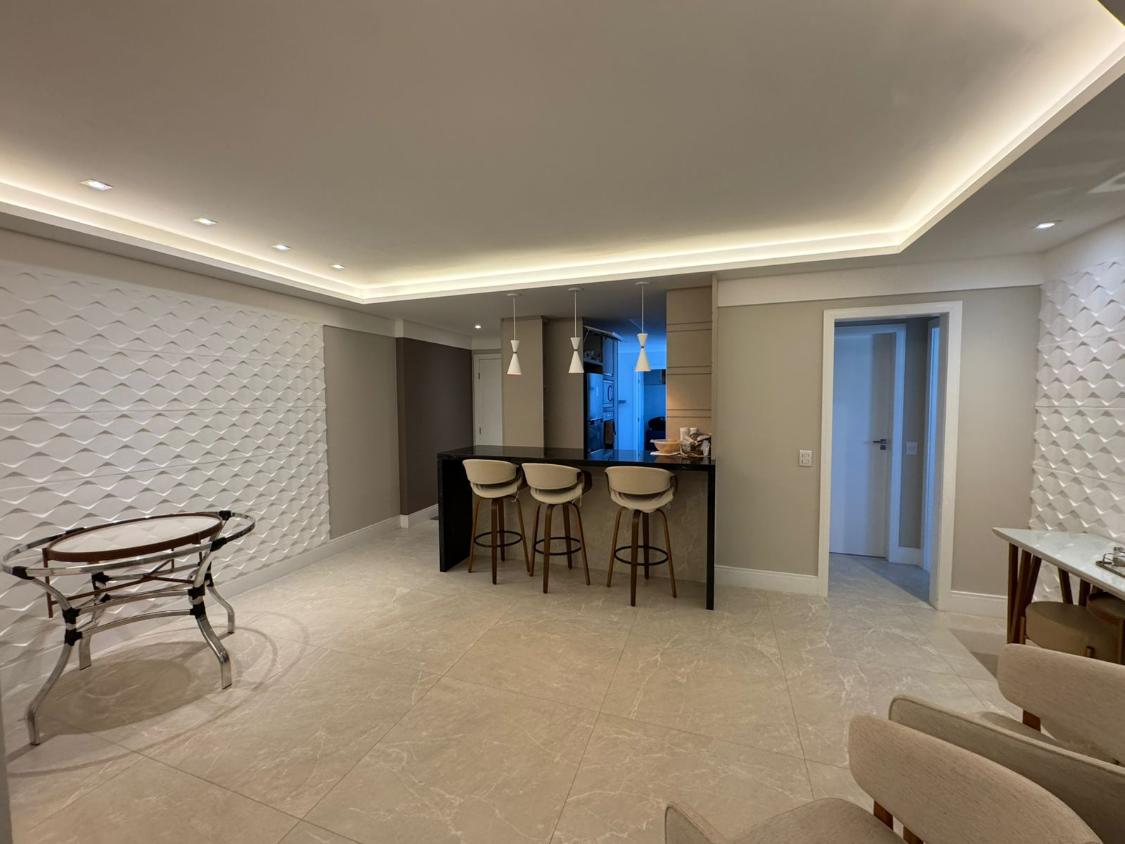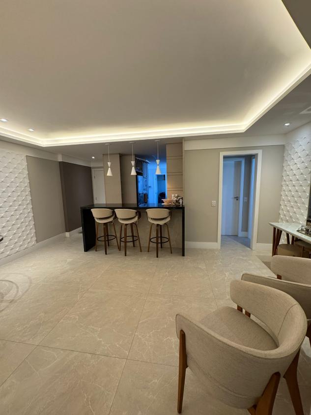 Apartamento com 120m² muito bem distribuídos, composto por sala ampla integrada à varanda, 3 quartos (sendo 1 suíte), banheiro social, cozinha, área de serviço com dependência completa e 2 vagas de garagem cobertas.